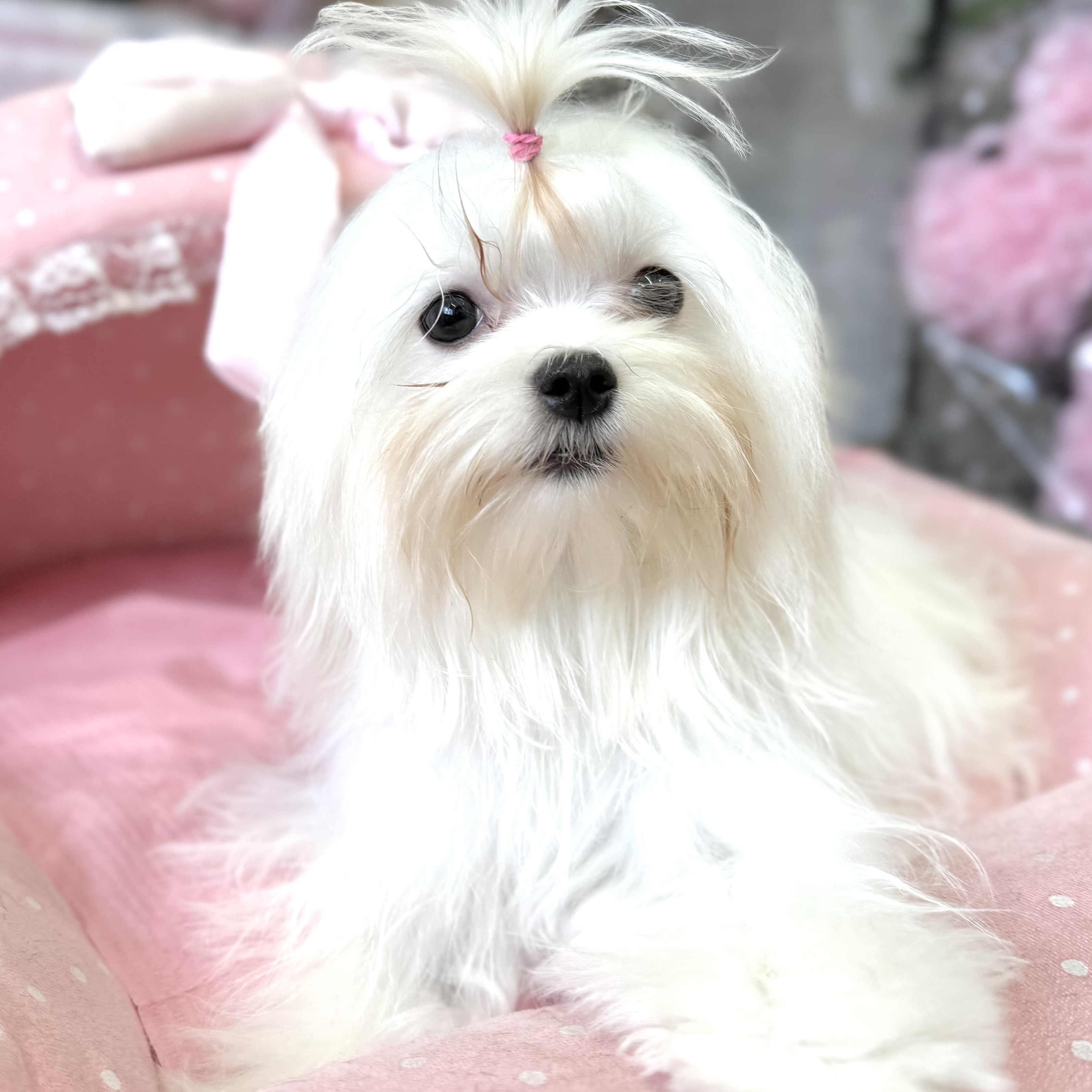 とても可愛く成長中です♪ まだカットせず結んでみました💛